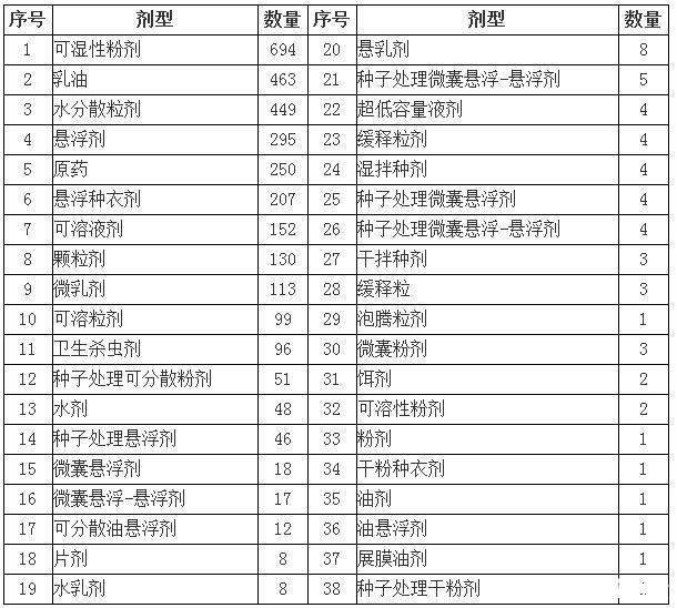 表2新煙堿類農(nóng)藥目前在我國登記的劑型及數(shù)目匯總