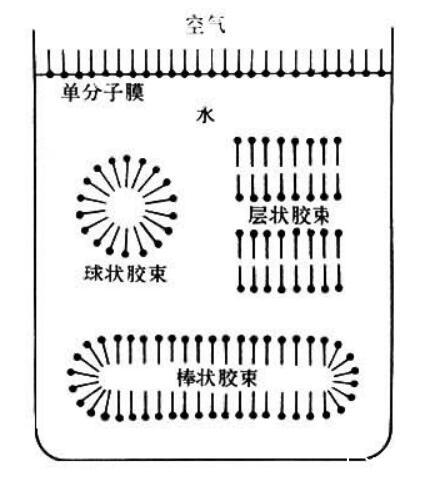 圖1含有表面活性劑的溶液中締合形成的膠團(tuán)或膠束過程的示意圖