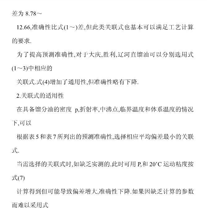【摘要】:確定并建立了石油餾分靜態(tài)表面張力的測(cè)定方法,并用吊片法表面張力儀及三種純烴考核了儀器的準(zhǔn)確性,建立了回測(cè)法以考核試樣蒸發(fā)損失的影響。實(shí)側(cè)了大慶、勝利和遼河三種原油直餾餾分在不同溫度下的表面張力及相關(guān)特性。提出兩類實(shí)用范圍不同的預(yù)測(cè)國(guó)產(chǎn)石油餾分表面張力關(guān)聯(lián)式,其平均相對(duì)偏差分別為1.17%~1.26%和1.77%~2.77%,可滿足一般工藝要求。