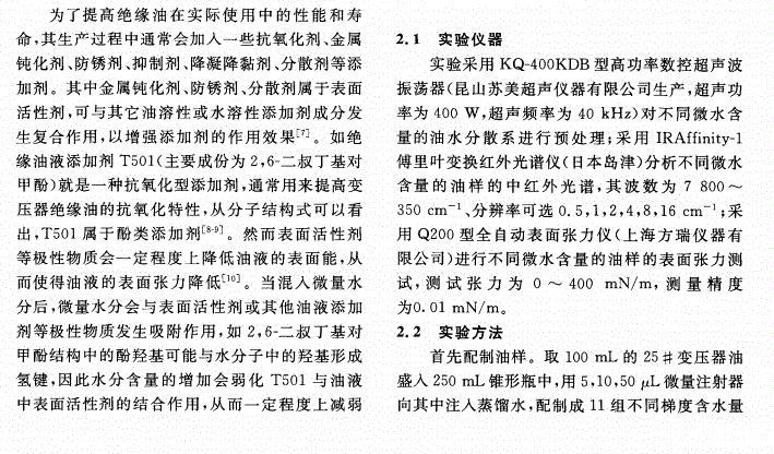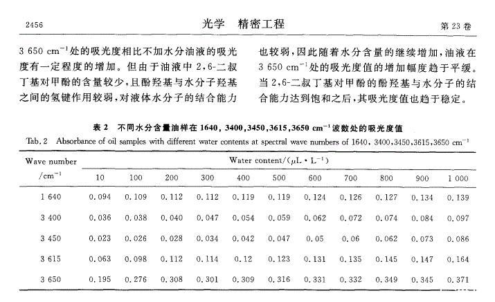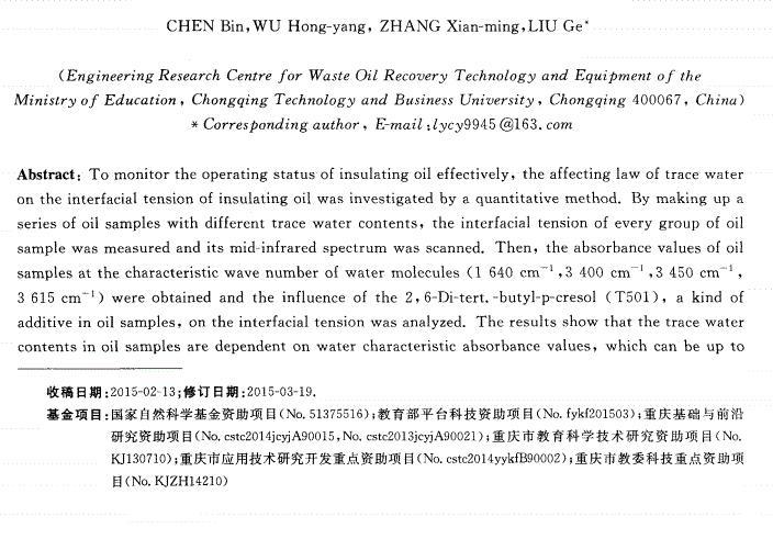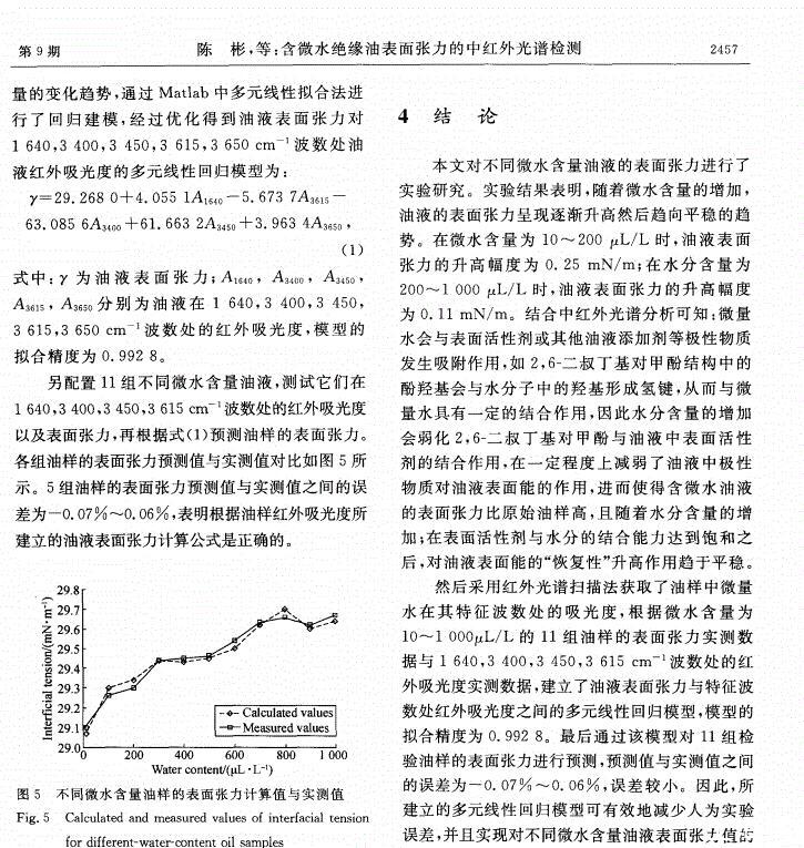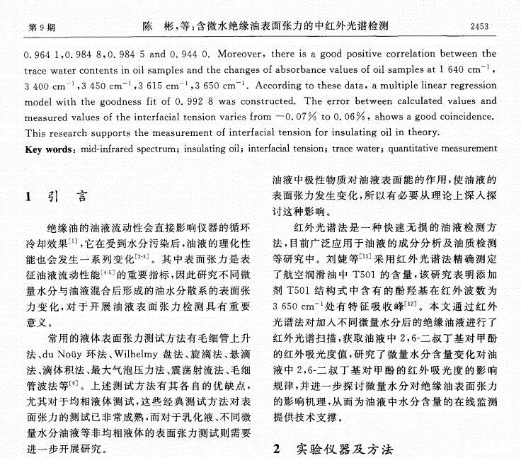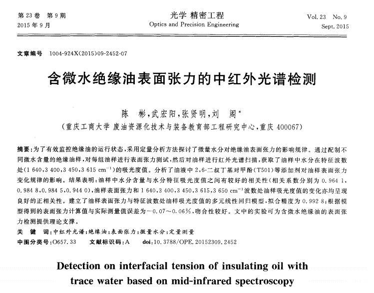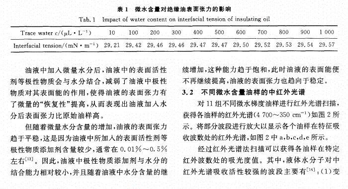 含微水絕緣油表面張力的中紅外光譜檢測(cè)
