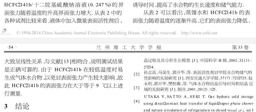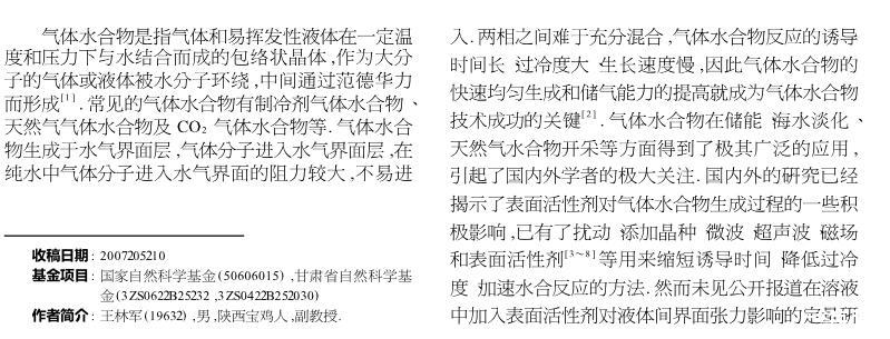 表面活性劑對氣體水合物界面張力的影響