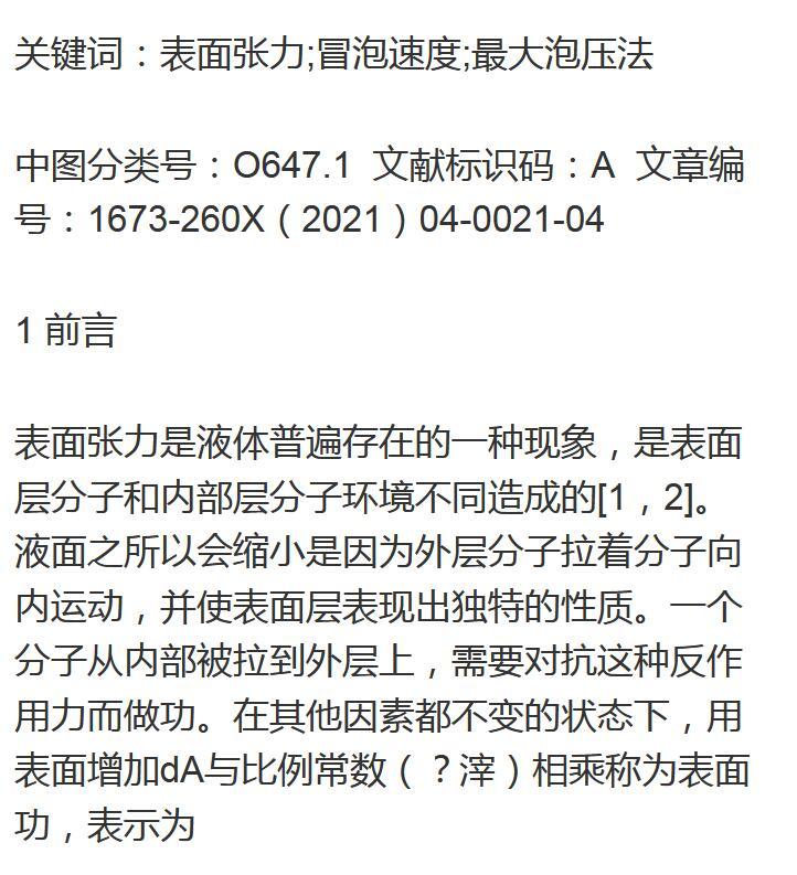 表面張力測定實驗的改進——冒泡速度對其影響的初探