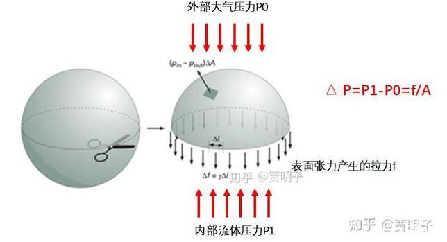 而這里有一件非常關(guān)鍵的事請,就是由于表面張力的存在,彎曲的表面就會在兩側(cè)形成壓力差。就好像緊繃的氣球,其內(nèi)部壓力要高于外部的壓力。這種壓力差來自哪里?當(dāng)然就是氣球皮膜緊繃的張力。由于氣球的彎曲表面,使得其張力最終表現(xiàn)為內(nèi)部壓力的升高。