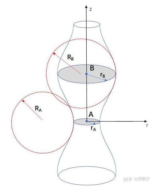 在A點,z方向上產(chǎn)生了負(fù)曲率(半徑RA),而r方向上,由于半徑變小,曲率變大。也就是說,A點上的曲率變化產(chǎn)生了兩個效果:
