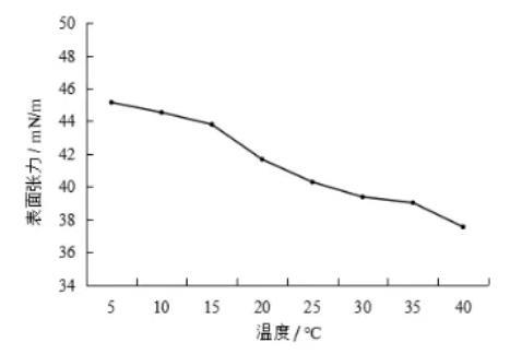 圖1不同溫度下合成血液的表面張力變化